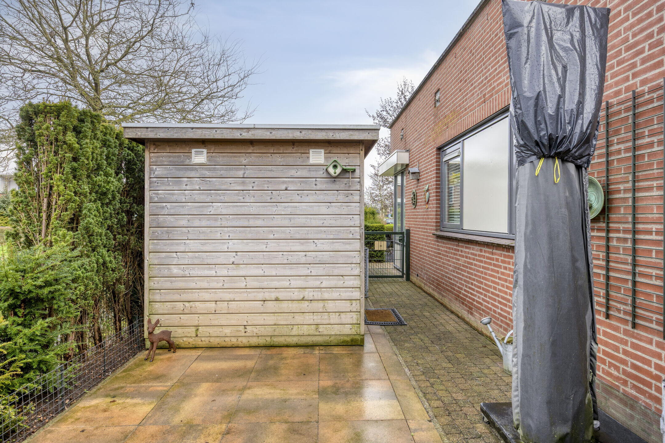 Aan de voorzijde ligt een verzorgde voortuin met eigen oprit. In de straat is daarnaast voldoende openbare parkeergelegenheid aanwezig. De zijtuin is overzichtelijk ingericht en voorzien van twee terrasjes, een grote haag voor privacy en een praktisch tuinhuisje.